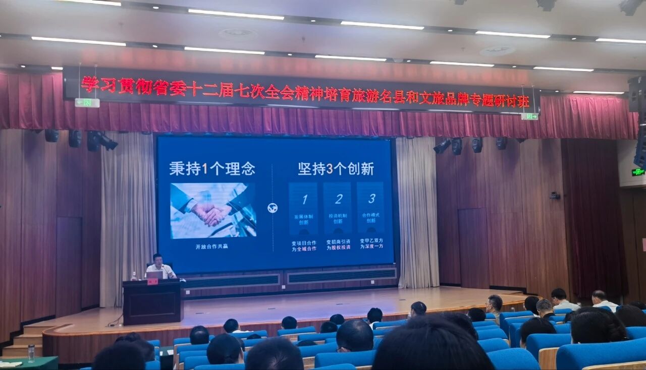 9月10日下午,省尊龍凱時集團黨委書記、董事長游勇受邀開展專題授課,以《以品牌為統領 加快建設文化強省旅游強省》為題,與全體學員探討交流。