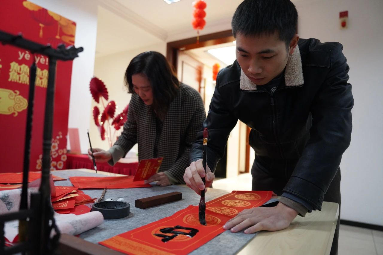無聯(lián)不成春,有聯(lián)春更濃。步入“福龍臨門”,揮毫潑墨,書寫“福”字。福畫新春,墨香四溢,每一筆都承載著新年的美好祝愿。
