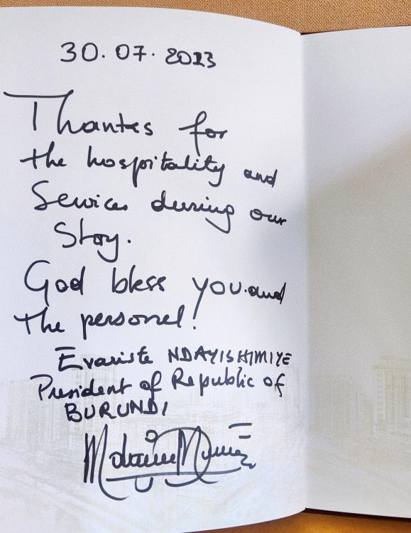 布隆迪總統(tǒng)·恩達伊施米耶感謝信
