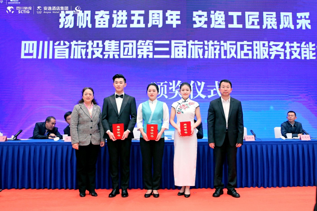 最終,金牛賓館榮獲團體金獎,四川錦江賓館榮獲團體風采獎。四川錦江賓館郭文龍榮獲前廳服務實操比賽一等獎,金牛賓館鄒妹榮獲客房服務實操比賽一等獎,金牛賓館劉瑩瑩榮獲中餐服務實操比賽一等獎。