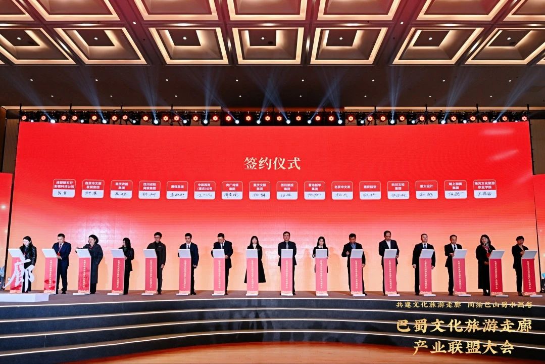 巴蜀文化旅游走廊產業聯盟是由重慶文化旅游集團與四川省尊龍集團共同發起,聯合兩地區縣政府、文旅企業、科創平臺、高等院校、金融機構、文博單位等共同組建的市場化聯合體,現有成員單位280家。聯盟將通過發揮項目投資、金融賦能、產業咨詢、配套服務、招商引資、宣傳推介、政策爭取等七大功能,實施川渝兩地文旅資源的全面整合與深度開發、資源高效配置利用,打造更具吸引力的旅游線路和標志性爆款精品,培育一批具有國際競爭力的文旅領軍企業,促進地區文旅產業提檔升級,推動巴蜀文化旅游走廊高質量發展。